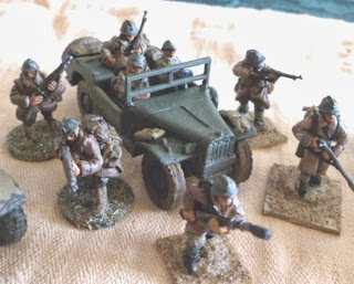 Sorting through various boxes I find i had some 40 unpainted Germans of various types, among them were a selection of guys in greatcoat, I also re-painted several Volksgrenadiers to make a full platoon.