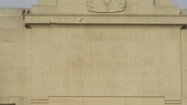 The names of 54,395 men from Britian and the Commonwealth who died in the salient but whos bodies were never identified or found are incribed on the walls. It should be noted (with some shock) that these are only those who died before 15 August 1917! Another memorial at Tyne Cot (which we didn`t visit has another 34,984 names!! Neither memorial has any names of soldiers from New Zealand or Newfoundland as these are honoured with their own memorials or of course all those many thousands who have graves among the numerous military cemetories in the area!